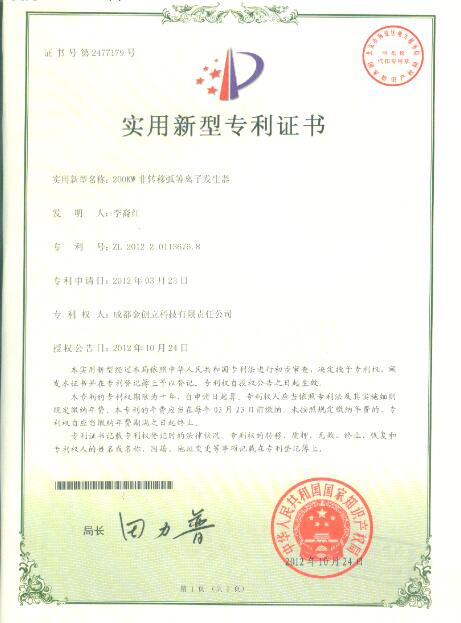 成都金創立科技有限責任公司成立于2007年,地址在成都新都區斑竹園。公司主要以等離子技術研發、應用、推廣為發展方向,開發、生產了先進的逆變電源、脈沖電源、真空鍍膜電源、大功率開關電源、專用脈沖電源、高壓電源和專用自動控制系統等設備。由于公司擁有多項發明專利和實用新型專利,以及公司在國內等離子電源技術方面的領先地位,成都金創立科技有限責任公司是中國電源學會理事單位。